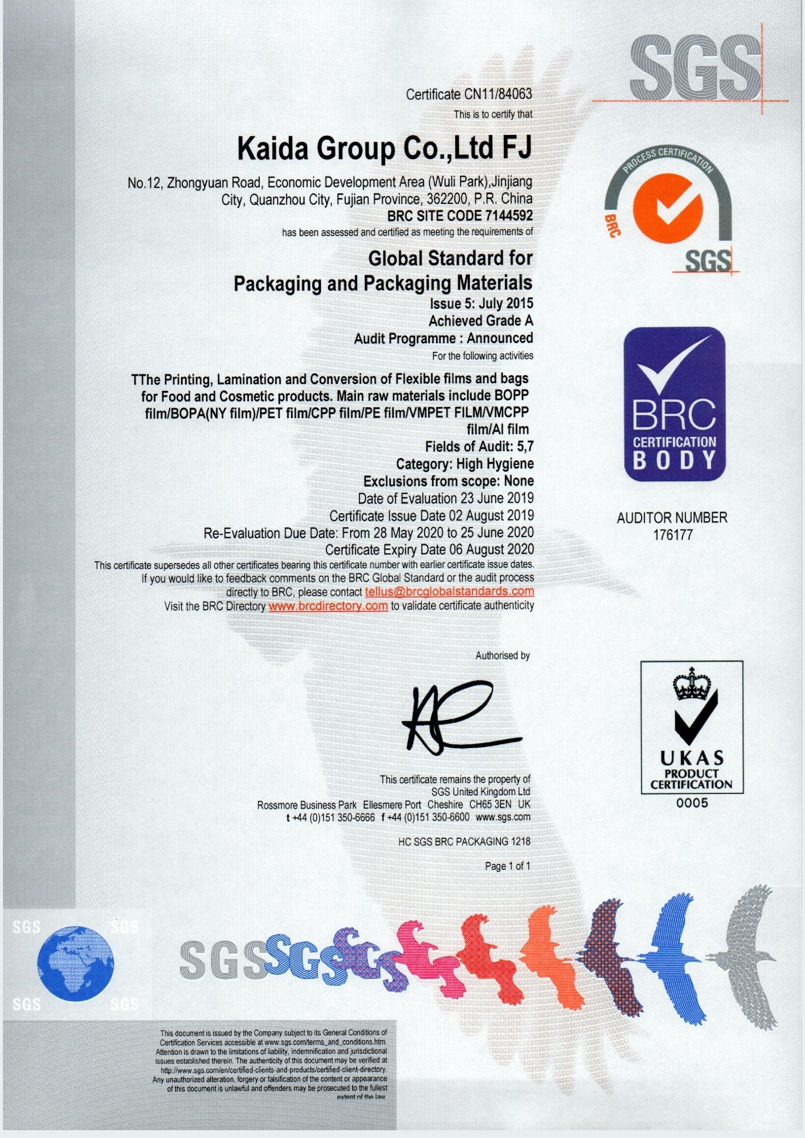 2007年8月 —— 公司顺利通过食品包材质量安全认证